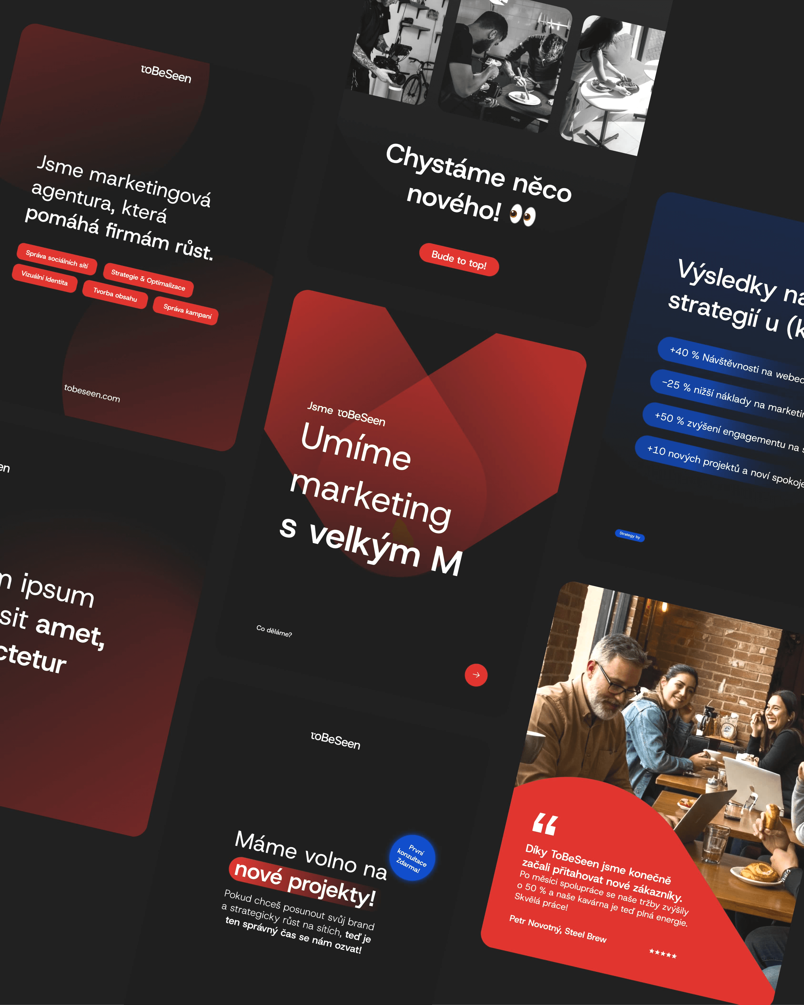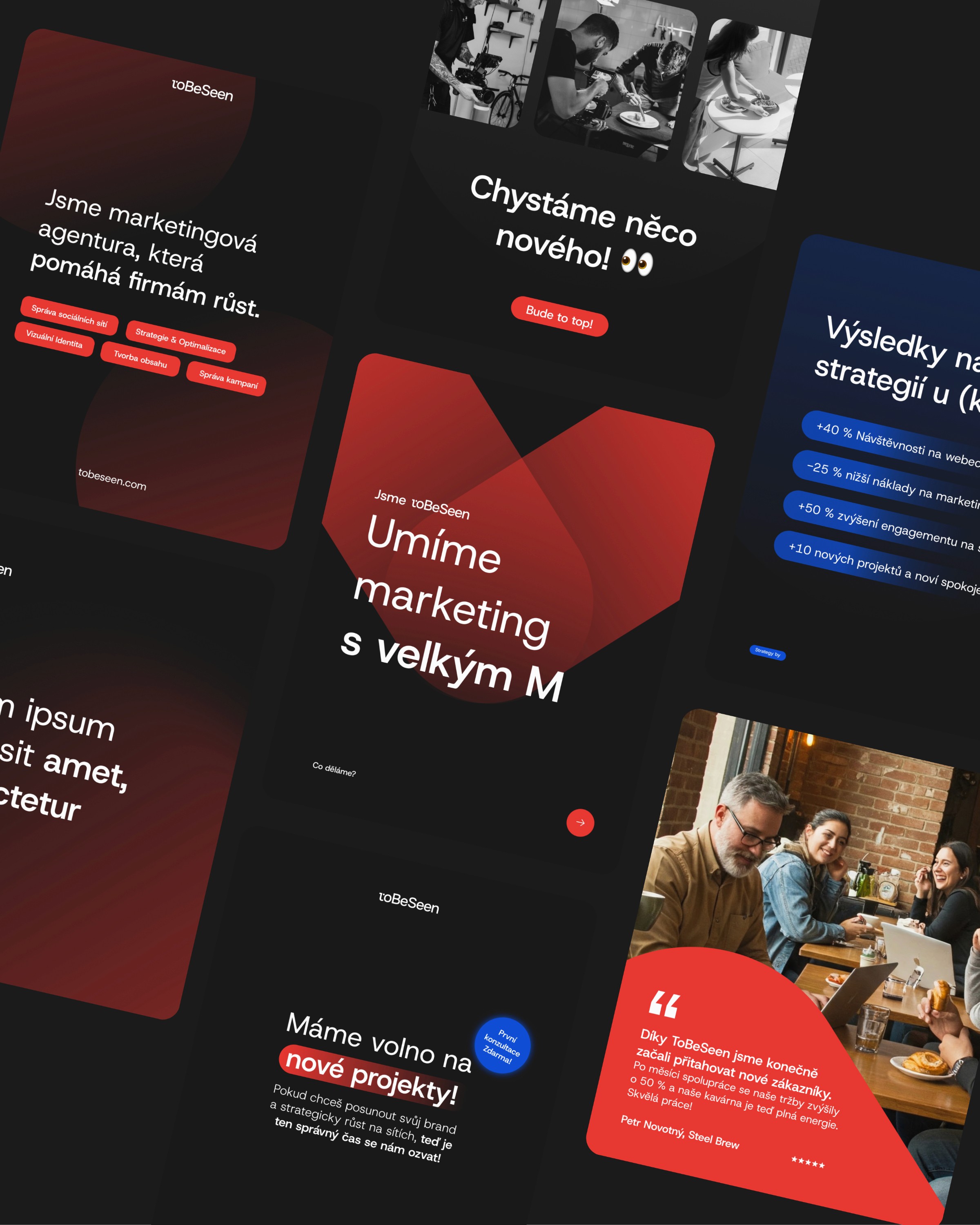 ToBeSeen pomáhá firmám růst skrz správu sítí, tvorbu obsahu a optimalizaci konverzních cest - profesionálně, s důrazem na kvalitu, výsledky a srozumitelnou komunikaci.